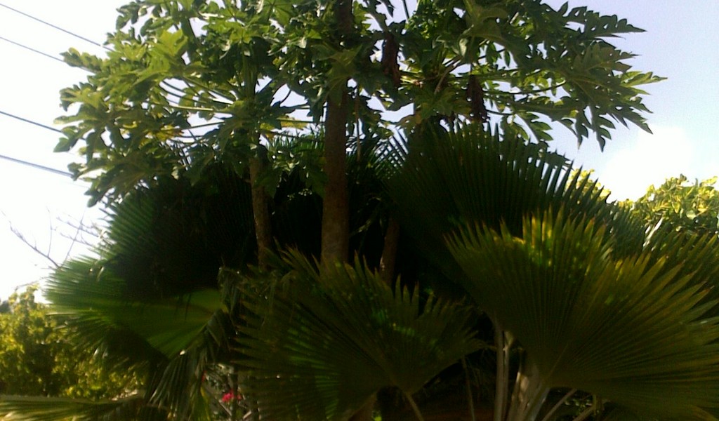 ... de "verplichte" papaya (pawpaw noemen ze dat hier) die als "kool" groeien. Dze hier is ongeveer 3 jaar en 5m hoog.