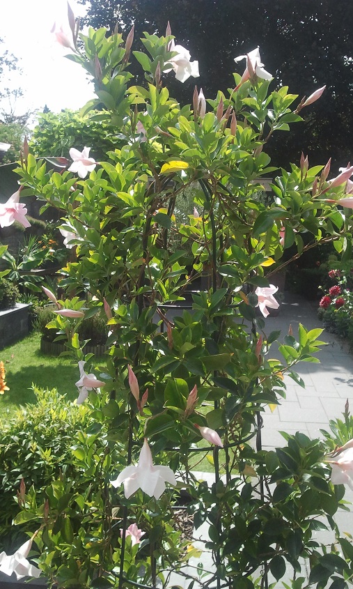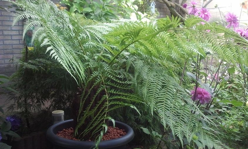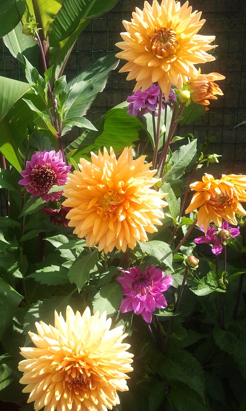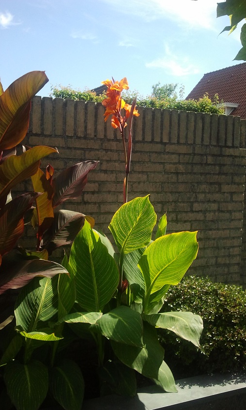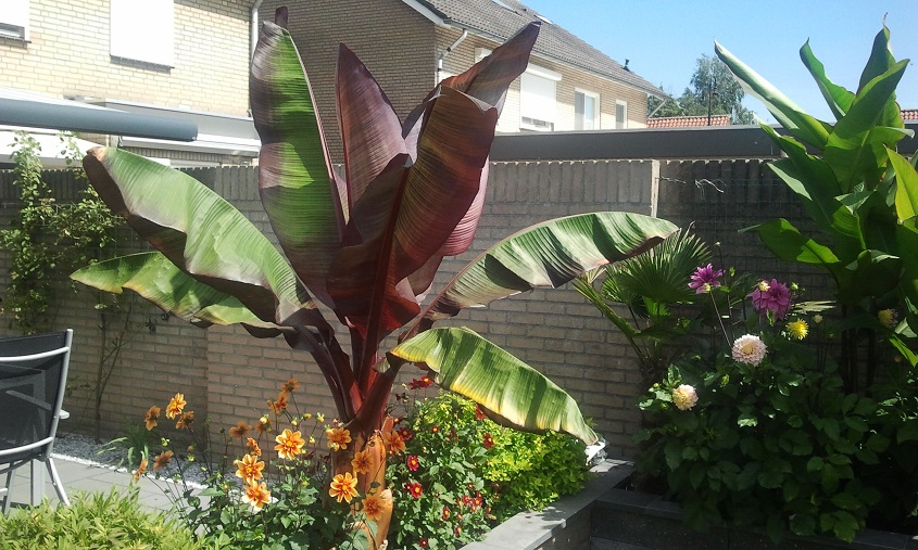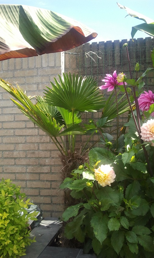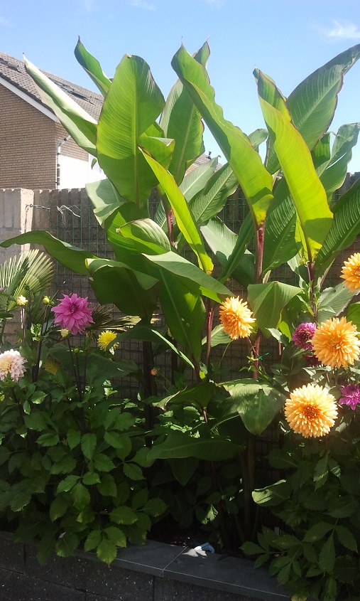 Dit is mijn eerste jaar met een paar bananen, canna's, dahlias. Ik heb het lekker volgezet, achteraf misschien iets te vol