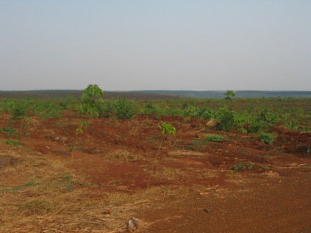Dit zijn de typische rubberplantages van de Fransen, net bij het aanplanten in Kompong Thom. Ik kon de Mekong niet verder volgen wegens de stijle kliffen. Het liep dood en moest de rubberplantages in, maar had onvoldoende brandstof.
