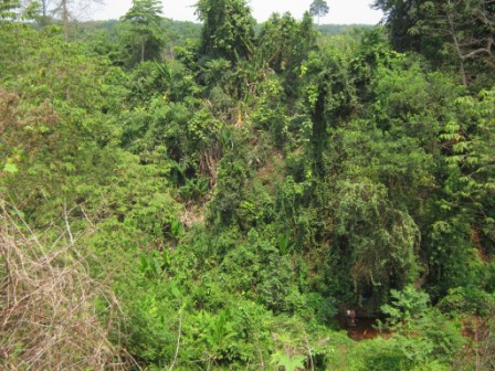 De 2 afsluitende foto's zijn genomen in Kompong Thom, vlakbij de Mekong. De eerste is een Anacardium occidentale en de afsluiter is de jungle waar ik een video van heb genomen. De motor moest ik achterlaten. Veel cicaden, boomvarens en Musja! 8-)