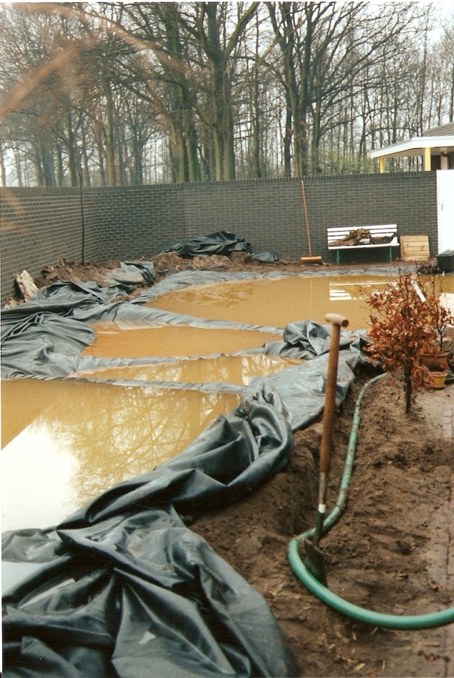 Het grondplan was klaar. Er zou behoorlijk wat water komen en er zou redelijk wat bamboe aangeplant worden. Wel zou de bamboe beschermd moeten worden, want in onze vorige tuin