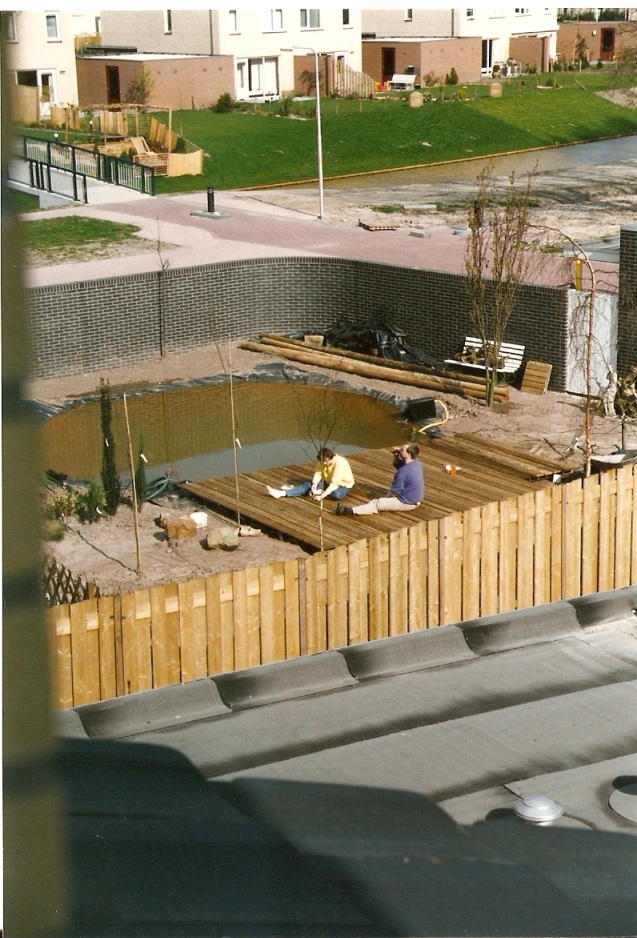 Het beschermen hebben we met damwand en met rhizomenbeschermer gedaan. Nu na 16 jaar geniet damwand profiel de voorkeur.