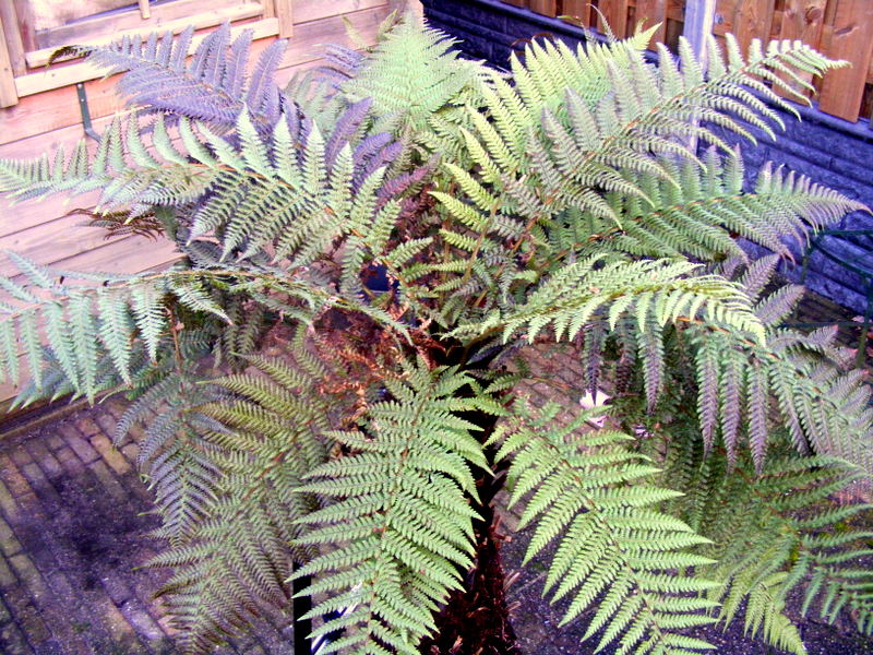 De varen heeft te droog gestaan, hier en daar een raar blad maar dat is nu nog maar een kwestie van de juiste verzorging.
