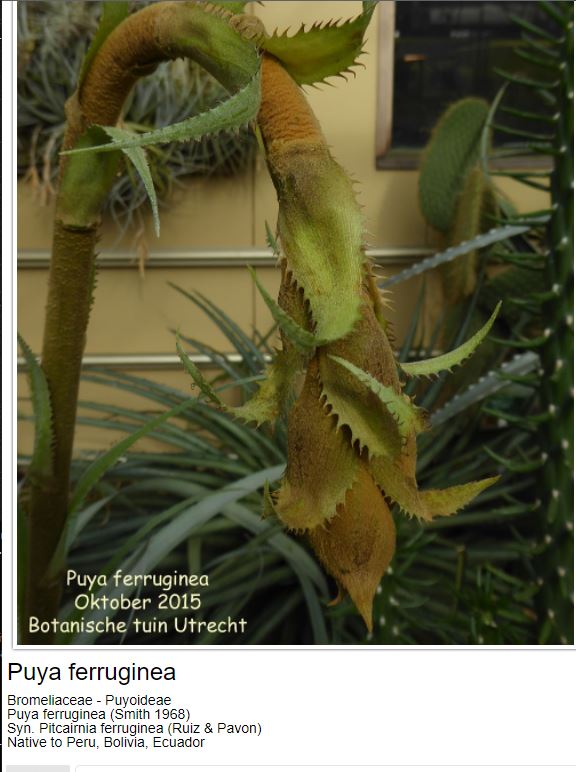 - Pitcairnia/Puya ferruginea staat te boek voor zone 8b, houd van arme gronden, en is droogte en schaduw tolerant. Ik overweeg hem in volle grond te proberen. iemand ervaring?