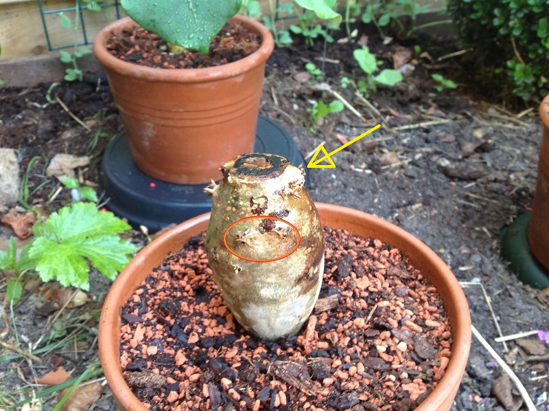 ) geen leven is te zien staan ze buiten in de schaduw op het terras. Krab ik voorzichtig een klein stukje van de 'knol' open dan is het daaronder heldergroen