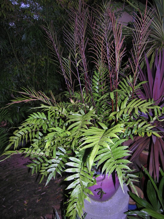 De laatste varen die ik wil laten zien is Blechnum wattsii, die zich momenteel tooit met hoogopgaande fertiele bladeren. Deze fraaie soort trof ik enkele jaren geleden bij toeval aan bij Gardenpalms.
