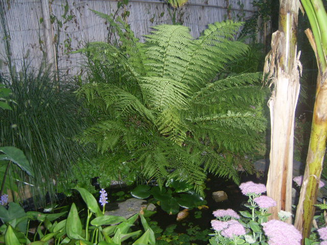 bij de vijver,het is echt een reus,in 3 jaar is deze meer dan 10 cm gegroeid. de boomvarens zitten al terug bomvol met nieuwe krullen :mrgreen: de luchtvochtigheid van de vijver zal wel een rol spelen
