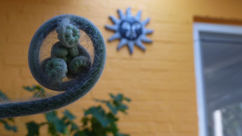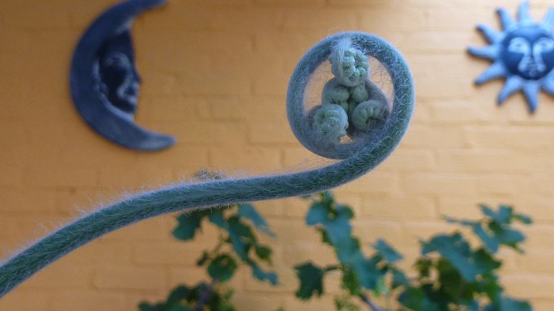 De barometz heb ik sinds vanmorgen terug op m'n terras gezet (komende dagen mooi weer verwacht)omdat ik graag zou willen dat de veer verder uitrold naar boven toe(betere lichtverdeling) en heb er ook terug de plastiek om gedaan om de veer in een rechte lijn laten door te groeien want denk dat ie door het verwijderen van de plastiek een dipje gehad heeft(klein dipje)..ook zichtbaar op de foto's