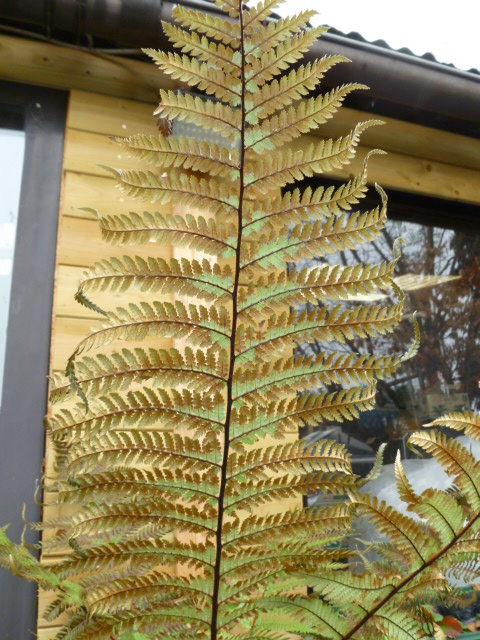 Hoi varenvrienden,heb enkele foto's genomen van m'n D.squarrosa die er momenteel minder uitziet..Heb m mooi de winter doorgekregen in de serre maar de laatste weken gaan de veren opkrullen en verkleuren..licht het aan de lichtinval in de serre ?Heb m net verpot want het was 1 en al wortel en toch wel vochtig gehouden.