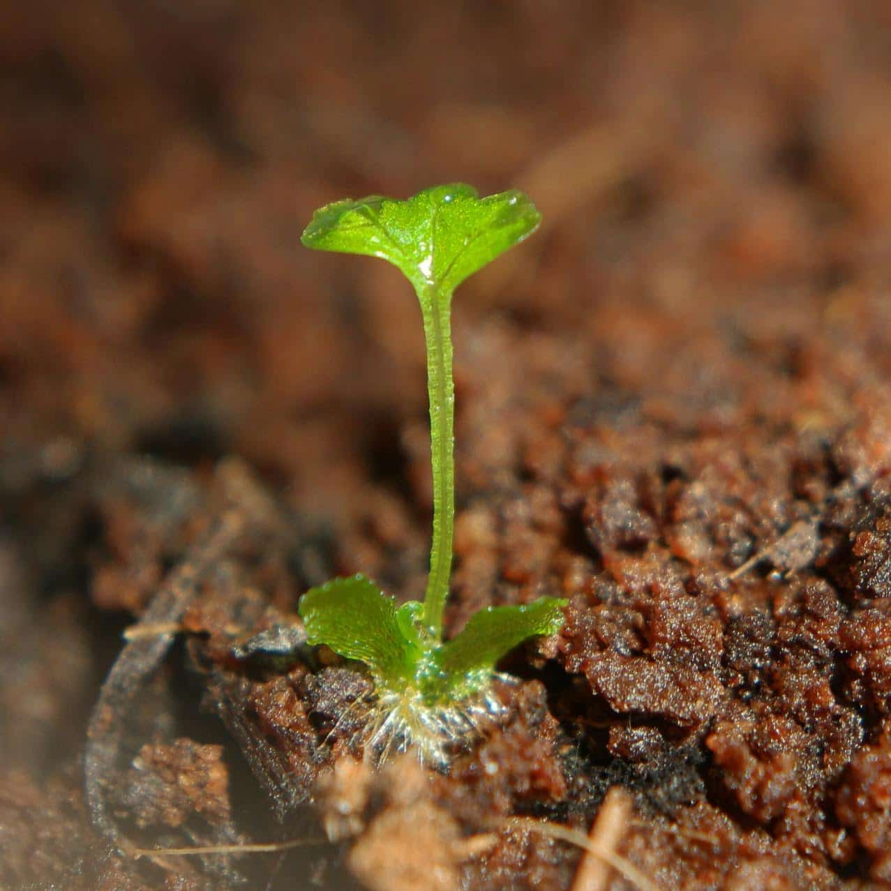 Nu is er in totaal één plantje opgekomen, welke er wel gezond uitziet. Kan die nog een tijd in dit bakje blijven zitten of moet ik hem binnenkort verplanten? Hij is echt nog heel klein, kleiner dan een centimeter. Hij staat trouwens in cocopeat.