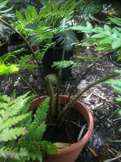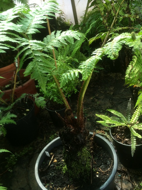 Hoi weer even tijd voor een update onder de wat bijzondere soorten die hier staan, te beginnen met een mooie soort uit N.Z. de Dicksonia lanata, kreeg het plantje van een Britse varenvriend en het is wel bijzonder te noemen, deze komt vaak als kruipende soort voor bij kwekers en in het wild, soms kom je ook de rechtgroeiende soort tegen waar deze er een van is,