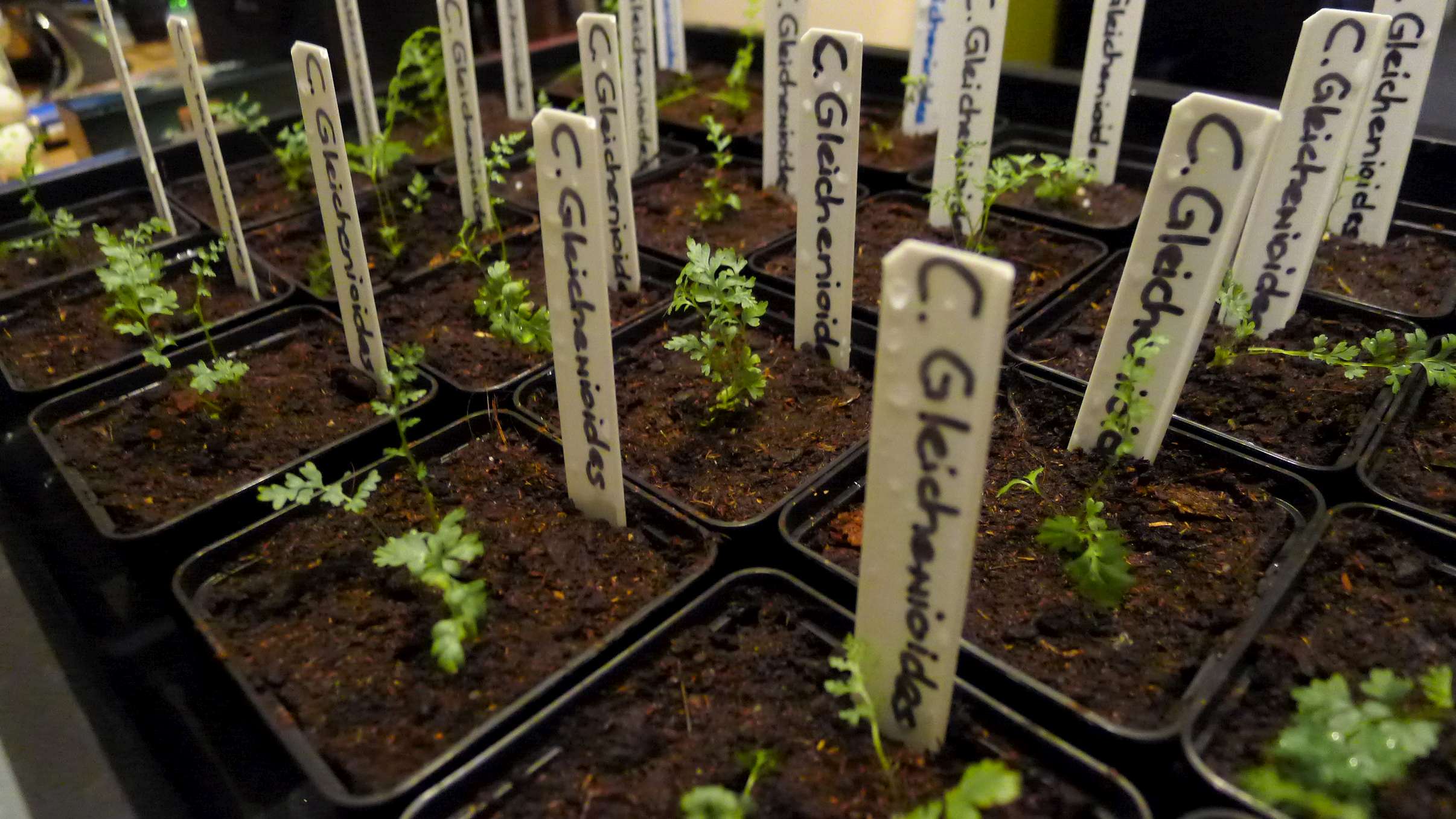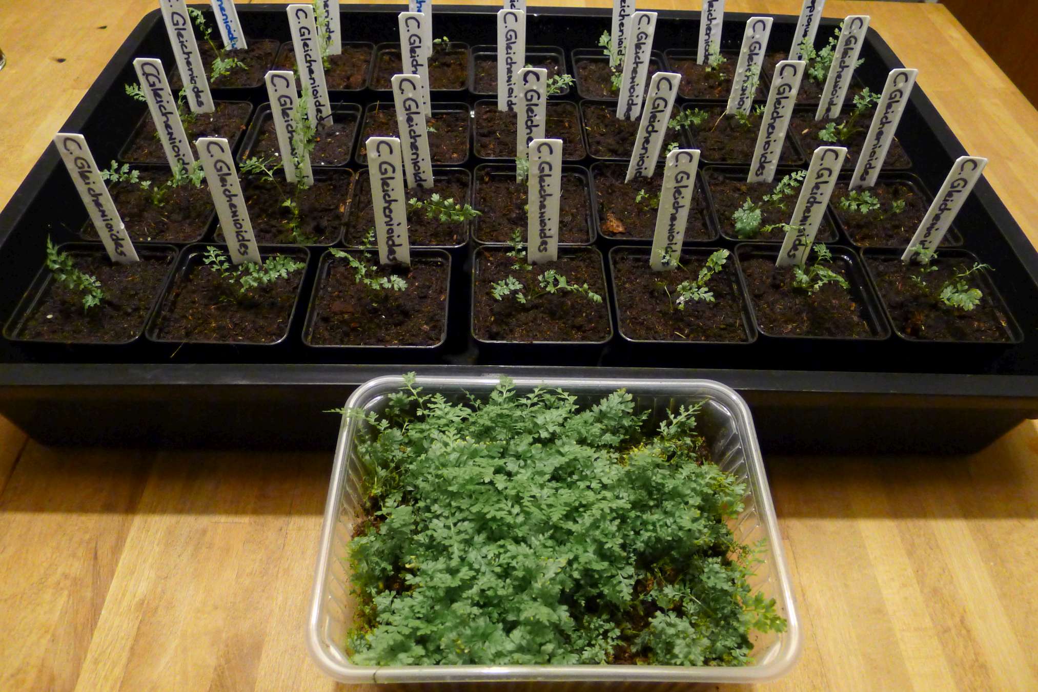 Enkele soorten hebben mijn brute gestunt tot nog toe overleefd en beginnen zowaar al op een klein varenplantje te lijken