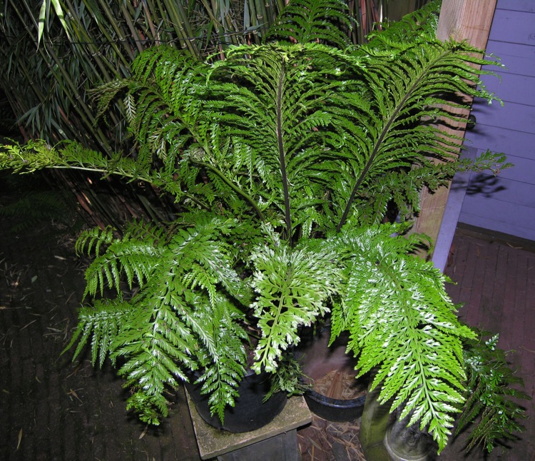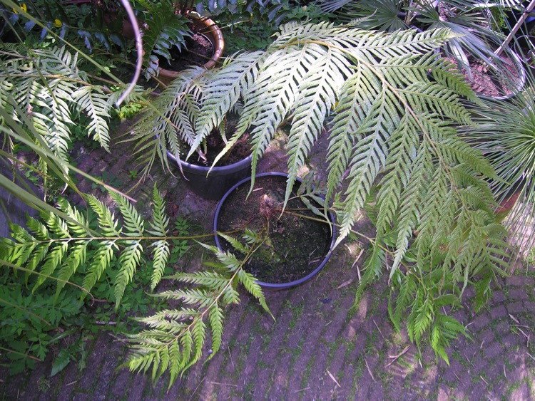 Om in de tuin mooier te kunnen utgroeien moet het klimaat wel meezitten, Eduard. De soorten waarmee ik heb geëxperimenteerd, groei(d)en allen beter in de kuip. Woodwardia orientalis ontwikkelde in de tuin geen broedknoppen omdat het blad 's winters verloren ging. Blechnum wattsii kreeg een terugslag na te zijn verkuipt, maar krabbelt nu langzaam overeind. Oude varens in kuip verpotten ervaar ik doorgaans als riskant. Je kunt een jonge varen beter snel doorzetten naar de eindmaat.