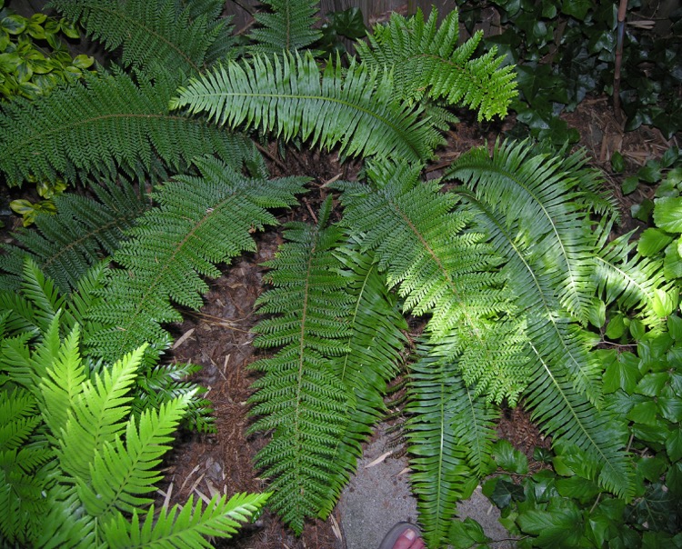 Varens hebben altijd mijn bijzondere belangstelling genoten. Lange tijd werd de varencollectie gedomineerd door boomvarens. Het was een lastige keuze om hier afstand van te doen. Hierdoor kregen de kleinere soorten vaak oude exemplaren wel weer de aandacht die ze verdienen en tevens een ruimer verblijf. In de afgelopen jaren is ook in de tuin geëxperimenteerd met diverse soorten uit klimaatzones 8 en 9. Woodwardia orientalis (prolifica) en Lophosoria quadripinnata overleefden de strenge reeks winters dankzij een afdekking of sneeuwlaag. Maar het resultaat stelde steeds teleur. Daarom zijn deze soorten weer in de kuip teruggeplaatst. Ook voor de Blechnum sps. magellanica, discolor en fluviatile strandde een poging tot vrije cultuur. Enkele soorten die duurzaam in de tuin overleven zijn Blechnum chilense en Woodwardia unigemmata. Polystichum proliferum, Todea barbara en Blechnum nudum hebben nu enkele zachte winters overleefd. Afgelopen winter was de laagste temperatuur -5°C. Voor het blad van Todea bleek dit te veel, de andere soorten bleven deels groen. De Polystichum verloor al eens het blad bij -9°C ondanks een bescherming met noppenfolie. Deze varens worden 's winters afgedekt met een laag afgevallen blad.