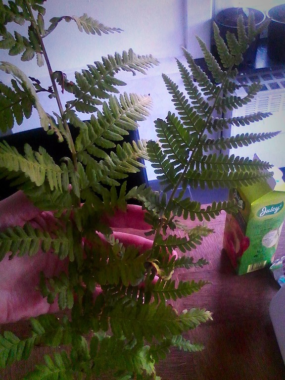 Het verhaal achter de vraag is.... Ik liep gister vrolijk naar de apotheek toen... groenmedewerkers van de gemeente lage struikgewassen aan 't snoeien waren, mijn oog viel op twee eenzame stengels van deze varen. Ik heb toen dus gevraagd of ik deze meneer mee mocht nemen :lol: