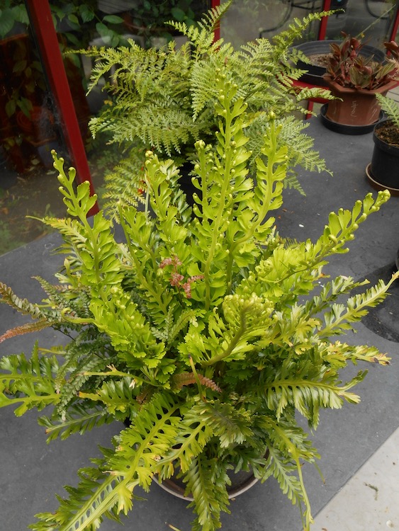 Hier volgen nog een aantal foto's van mijn favoriete niet-winterharde varens. Vanwege de slakken zijn sommige soorten gedoemd om in de kas te verblijven Aspleniums met name.