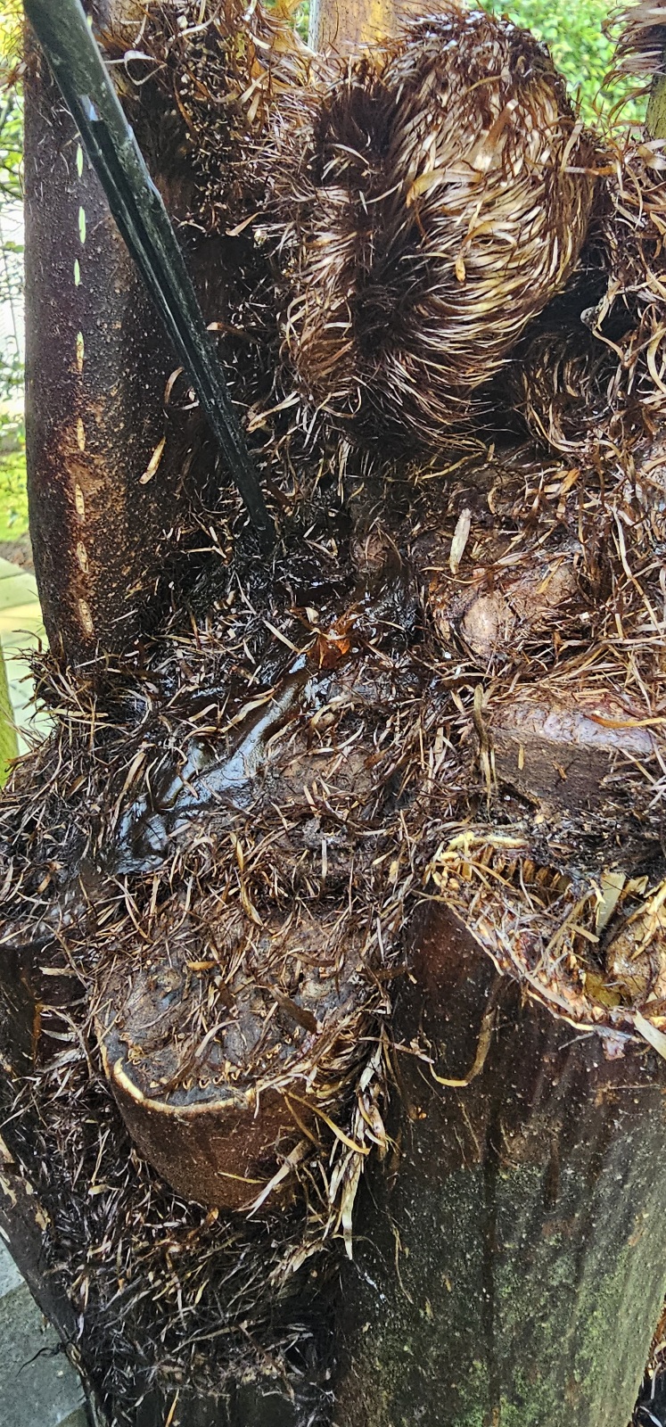 Ik heb dit zelf nog nooit gehad in de 30 jaar dat ik bezig ben met boomvarens! Wel bloedingen veroorzaakt door vogels, deze laten zich goed stoppen door er een prop eigen boomvarenhaar tegenaan te drukken en laten indrogen.