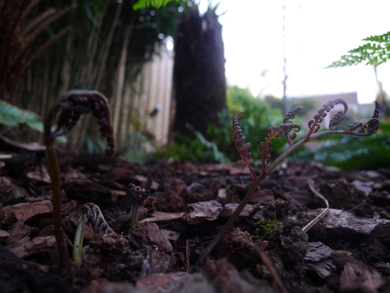 Na vorig jaar een ukkepukkie te hebben geplant, komt nu de Athyrium Niponicum 'Pictum' gelukkig weer boven. Door de schutkleuren heb ik er regelmatig overheen gekeken, terwijl ik er wel naar zocht.
