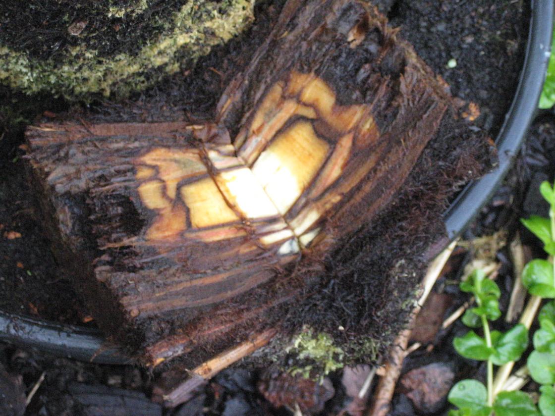 Zo te zien ben je dwars door het nog levende groeipunt gegaan met de zaag! Niet verstandig je had heel voorzichtig door het zachte gedeelte kunnen zagen en dan niet dwars er doorheen maar een inkerving kunnen maken tot dat je aan het harde gedeelte uitkwam, dit is einde verhaal volgens mij! Maar Ro komt met mooie aanbiedingen, daar zit de fibrosa ook bij.