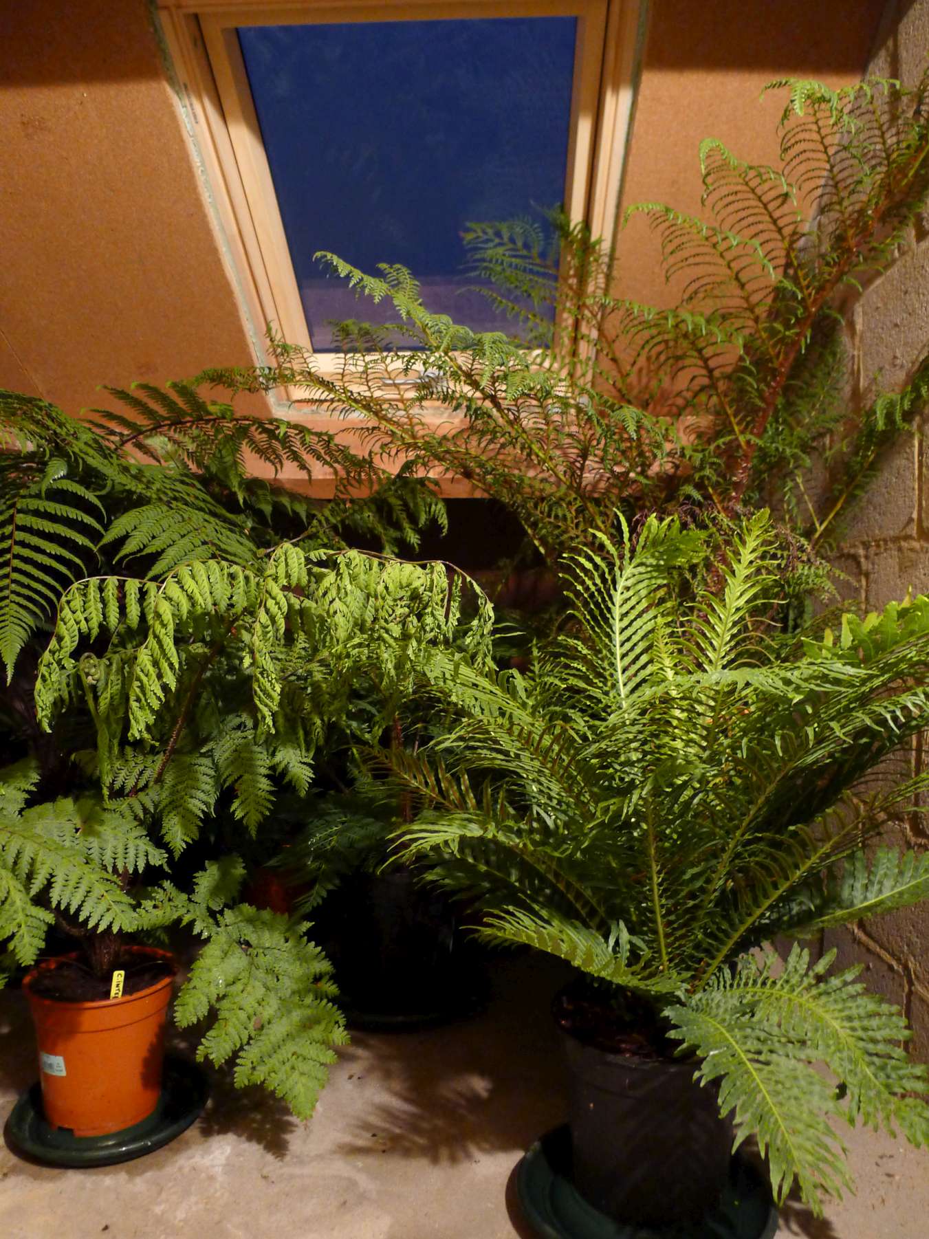 Dinsdagmiddag alle boomvarens in pot in de donkere garage gezet en zojuist de zolder op gegaan, waar nu wat meer licht is (nieuw dakraam geplaatst ipv zo'n 30x30cm plastic raampje).