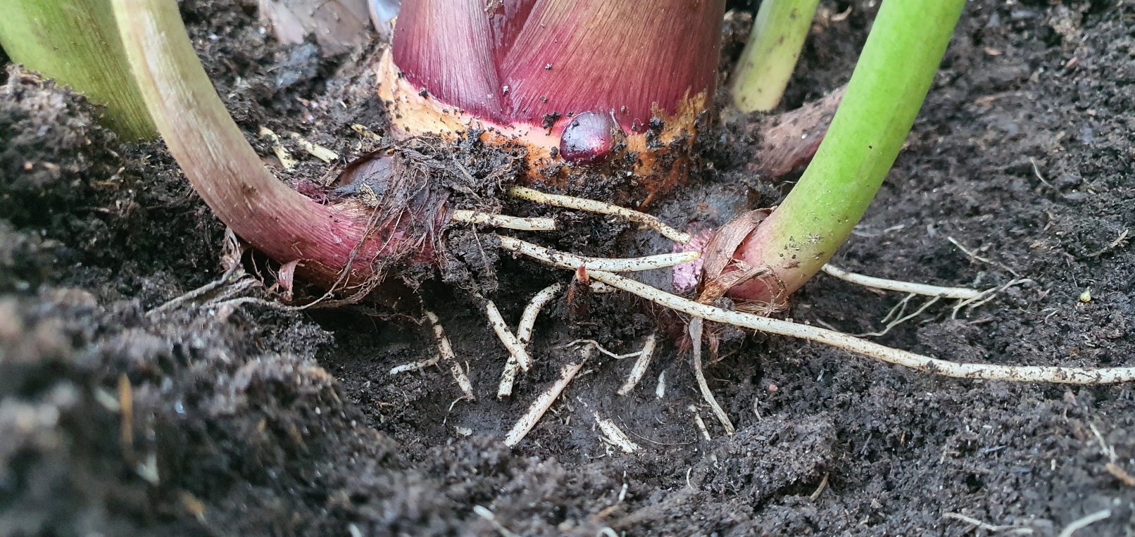 :? Ik zit in dubio met mn Colocasia. Nu ben ik heel voorzichtig aan het peuteren in de grond maar ik kom alleen maar wortel tegen die beschadig met mijn gegraaf. Hoe groot is de kans dat hij geen knol meer heeft? Dat ik hem opgraaf en ik met een plant zit die ik niet meer als knol kan overwinteren. De wortels gaan teveel stuk om hem als plant de winter door te trekken als ik door graaf. :? Ik weet echt even niet waar ik wijs aan doen. De andere soorten zoals black magic staan al wel binnen maar deze is eigelijk te groot om als plant binnen te zetten. En in de kas wordt het in de winter net te koud voor deze.