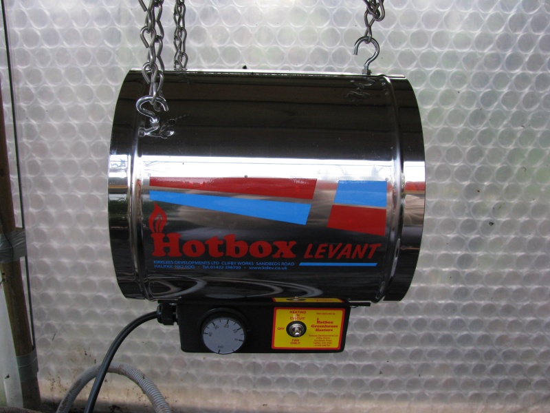 Ik ben de warmteblazer gisteren gaan halen. Nu nog alle elektriciteit aanleggen tot aan de serre. Je zou er een aparte kring voor moeten aanmaken met een aparte zekering, omdat je niet een extra toestel van 1860Watt op de kring mag plaatsen waar ook je wasmachine, droogkast, microgolf oven en zo op staan. De zekering zou springen elke keer als de verwarming aan schiet en je aan het wassen bent. Het is ook gewoon niet veilig ...
