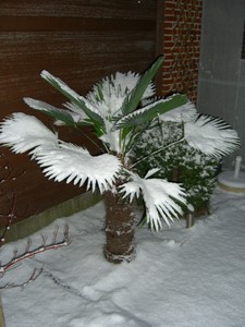 "mijn kleine Trachycarpus wagnerianus daarentegen doet het wel goed zo te zien"