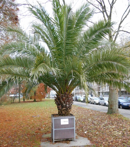 Bijgaande foto van een Phoenix canariensis toont aan dat met de nodige zorg en geduld, je ook in een container een imposante kuipplant kunt opkweken. Deze exemplaren bij Hortus VU (2 stuks) zijn nog afkomstig van de Utrechtse Hortus botanicus en staan volgens mijn weten al zeker 20 jaar in dezelfde kuip.