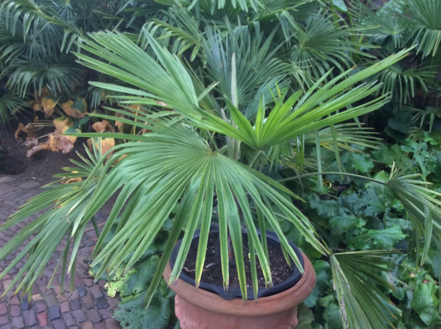 Verder hebik alvast de kuiplanten( chamaerops humilis, canaricche dadelpalm, solanum, cycassen,, jacaranda) uit gegraven. Deze stonden met kuip in de volle grond.