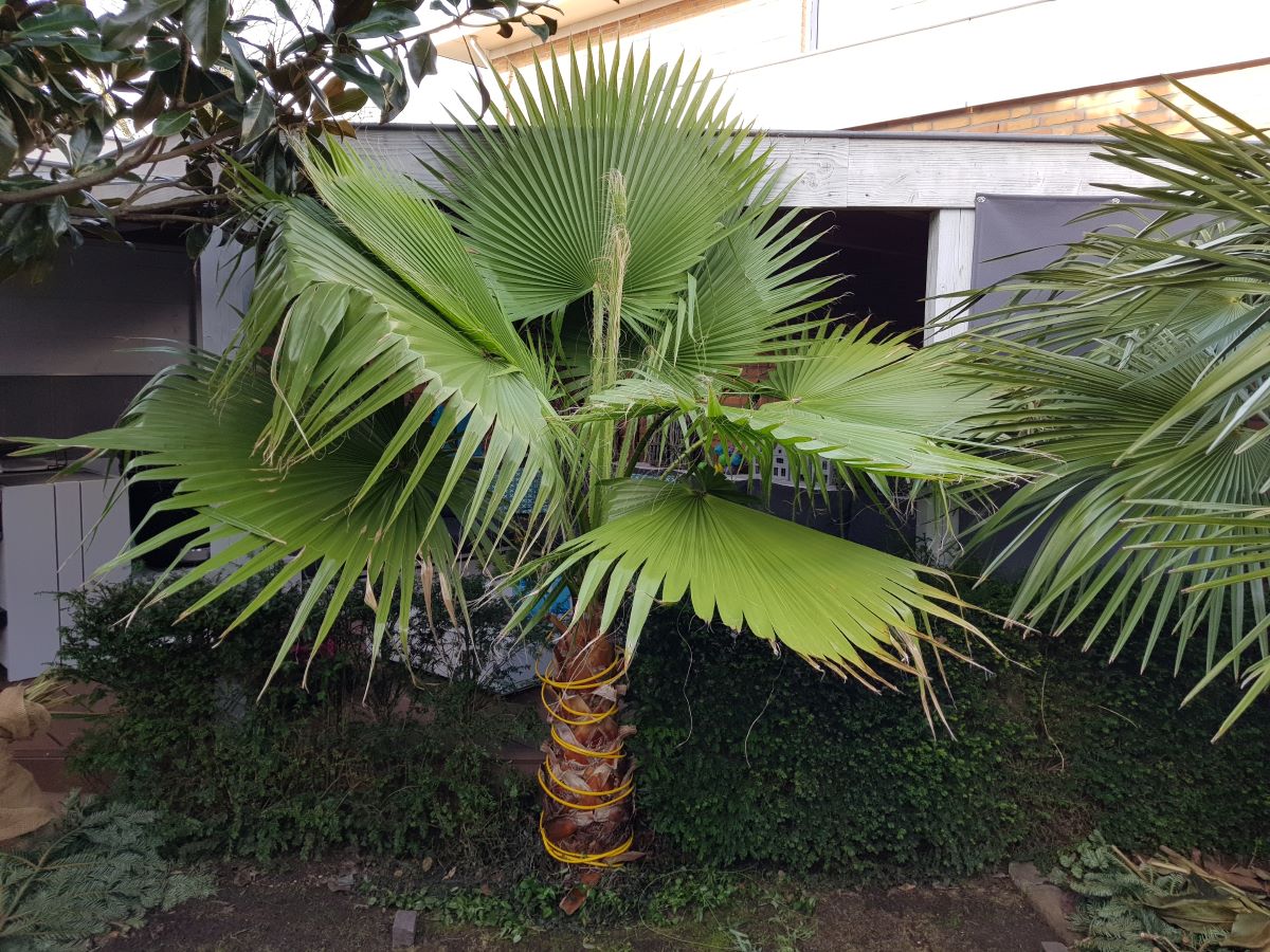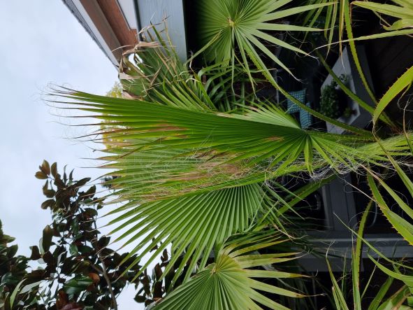 De Washingtonia uit onze oude tuin groeide de laatste paar jaren per seizoen meer als 20 bladeren. Zo rond deze tijd 2020 stond te teller al op 7 stuks, bizar. Zelfs hier kan ik daar met geen enkele soort aan tippen.
