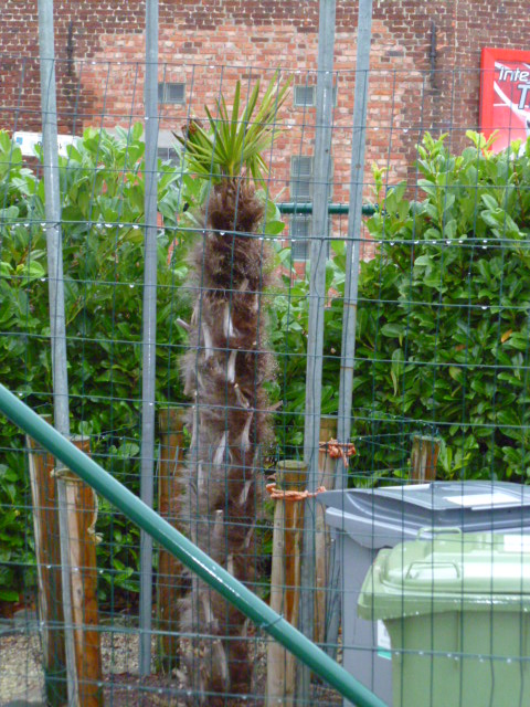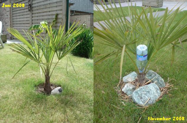 Inderdaad;een plat dak zakt vaak dan nog wat door en druppelt de condens net in het midden op de stam van de plant.Je kunt dit ook nog verhelpen door in het midden langs de palm een stevige paal te binden die het dak ondersteunt .Deze paal iets langer nemen dan de hoekpalen zodat de midden van het dak wat hoger is en de condens naar de zijkant loopt en niet op de palm drupt.