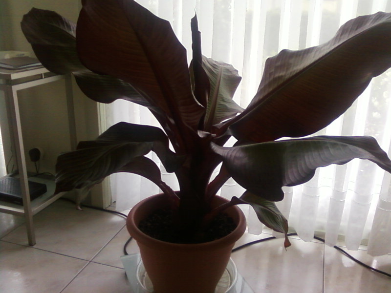 Zo zien de 2 Musa ornata's die in m'n serre staan er bijvoorbeeld lang zo mooi niet meer uit als de exemplaren die inmiddels binnen een plek hebben gekregen.
