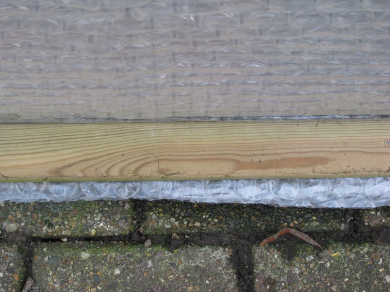 Zoals je ziet heb ik het overtollige isolatiemateriaal er niet afgesneden om zeker te zijn dat ik het volgend jaar nog kan hergebruiken. Zou jammer zijn dat het dan net 5 cm te kort zou zijn of zo ...