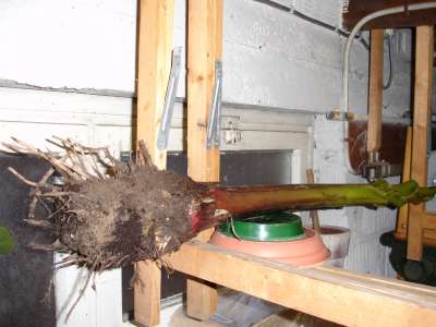 van de 14 stammen heb ik er 6 laten staan en de andere 8 opgepot en in de garage gezet behalve bij 1 stam,dat is een experiment die heb ik bijna zonder aarde gewoon weggelegd in de garage:afwachten wat dit zal geven.