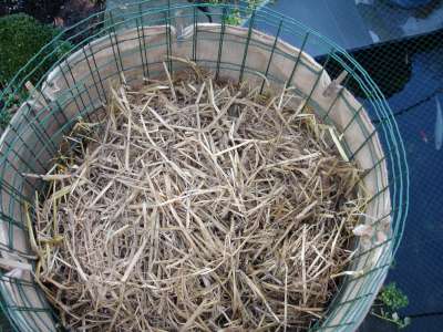Ik gebruik reeds jaren verse paardenmest of soms nat bladafval bij de M basjoo. Ik heb echter hierbij nog nooit rot gehad. (misschien geluk gehad) Het resultaat is dat deze licht broeit en voor beperkte warmte zorgt. Zelfs vorige winter heb ik mijn basjoo's zo succesvol kunnen overhouden. Het zat ook telkens vol regenwormen.