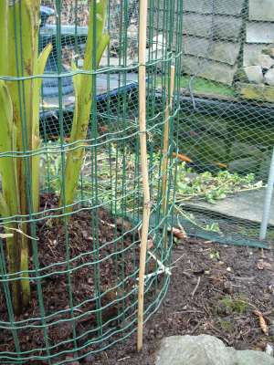 Jaak, ik zie dat je bovenop de verpakking van de stammen het oude blad afval van de plant hebt gelegd, dit kan je er beter uit halen omdat dit als eerste gaat rotten en daardoor de stammen daaronder ook kunnen gaan rotten. Ik weet ook niet of het compost wat je onder bij de stammen hebt gegooid droog was anders gaan de stammen daar ook rotten.