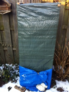 Vandaag de stammen van de trachies en waggies een lichtslang/warmtekabel gegeven, verder geen vliesdoek of fles. De vorst duurt me te lang om verder niets te doen.