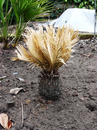 Ik denk dat zelf de Cycas revoluta het gered heeft de bladeren zijn wel bruin maar de knol is nog hard.