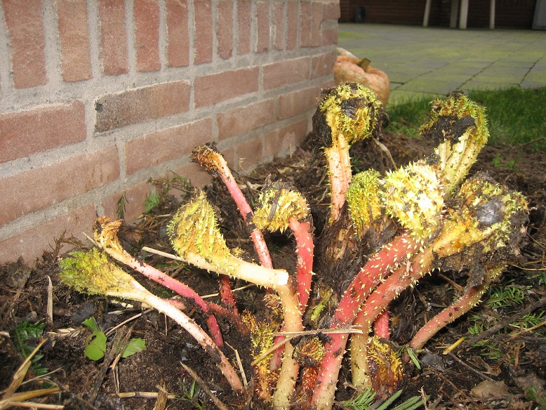 Heb een Gunnera tinctoria buiten staan afgedekt met stro en een ton erover.....echter deze is al flink aan het groeien...denk er over om de ton en stro weg te halen en hem dan te laten staan....echter het is en blijft nog altijd februari. Vorig jaar een prachtige Gunera manicata verloren door de plotselinge onverwachte nachtvorst....Wat is wijsheid.....eraf halen en weer in de gaten houden...deed ik vorig jaar ook maar toen was het heel onverwacht. :?: