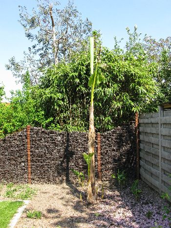 De basjoo kan je uitpakken als de nacht temperatuur boven de 2 graden blijft, andere winterharde Musa soorten pas als de nacht temperatuur boven de 6-8 graden blijft zijn mijn ervaringen. Zorg er bij die lage temperaturen wel voor dat ze niet constant vochtig zijn anders rotten ze als nog weg dit komt omdat ze geen blad hebben om het vocht te verdampen, 2-3 dagen regen is geen probleem maar een week of langer kan funest wezen.