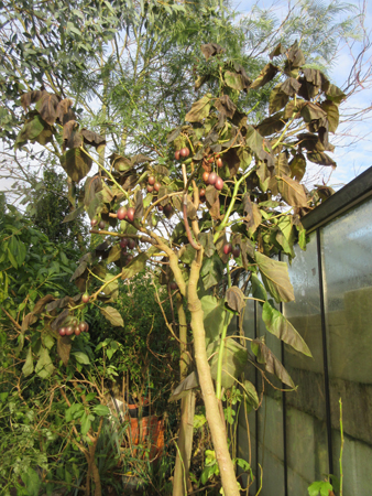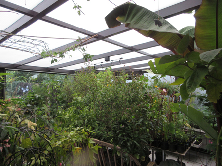 In de verranda, met cv, de meest exotische, van 6 tot 10° overwinterd.