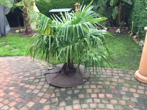 Ik heb nog nooit een Trachycarpus verloren door wortelbevriezing, zelfs niet toen het hier -20 vroor met 10 ijsdagen van -10 dus dat lijkt mij wat 'overkill'. Ze moeten natuurlijk niet in een plas met water staan maar dat lijkt me duidelijk. Het gevoeligste punt aan je palm is het groeipunt en pakweg 25 cm daaronder dus de essentie zit 'm in het beschermen van je kroon en stam.
