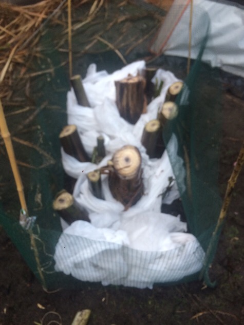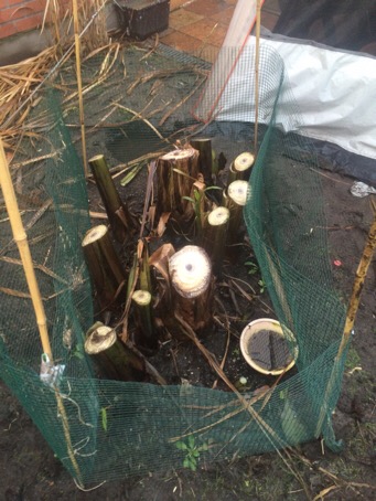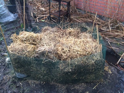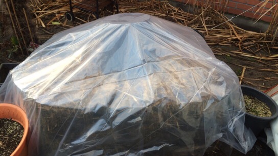 Hier wat foto's van winterbescherming basjoos. Vorig jaar had ik in de hoogte ingepakt maar nu is pol te groot en heb in ze afgedaan op 50cm.