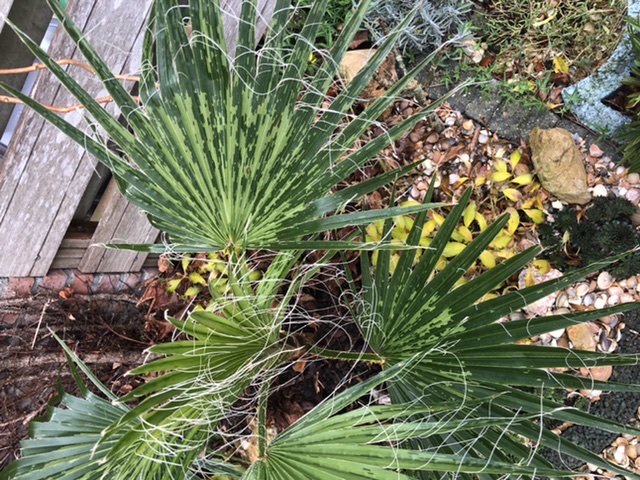 Je kunt het bruine blad wegnemen - het draagt niet meer bij aan fotosynthese - maar je zou ze eventueel kunnen laten zitten totdat we zeker zijn dat er geen nieuwe vorst komt.