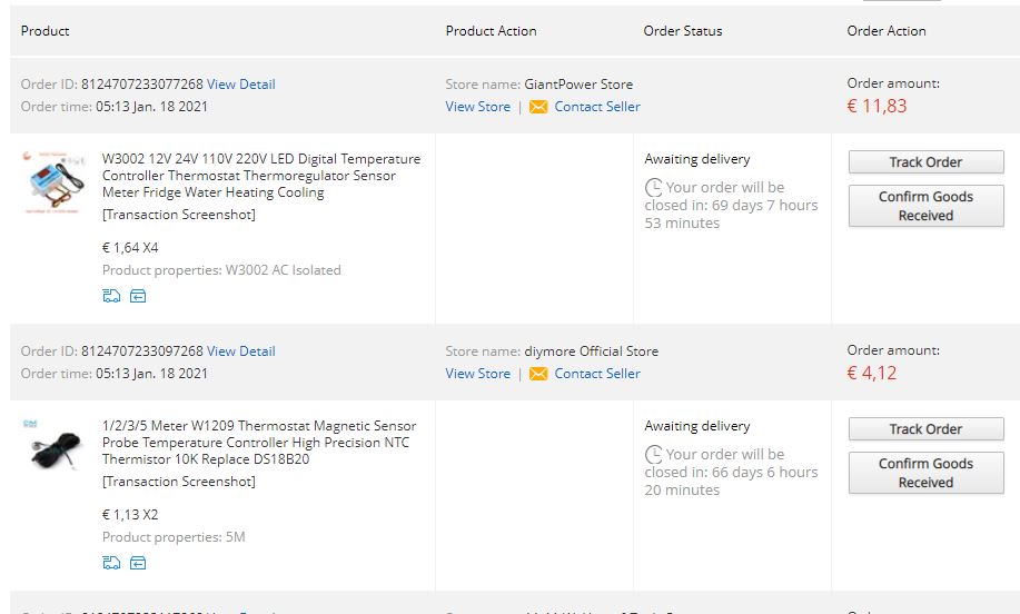 heb bij de bekende site Aliexpress interessante thermostaten gekocht en zelf een knutselwerk gemaakt om palmen te beschermen (verwarmen)