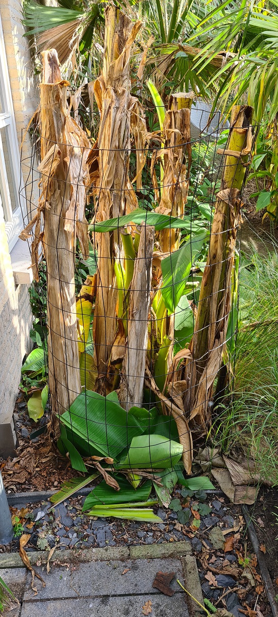 M. zaifui overleed afgelopen winter, en M. Helens Hybrid verloor 2 van de 3 stammen, maar liep keurig terug uit. Musa Sakhalin overleefde met glans (maar das ook een M. basjoo in feite).