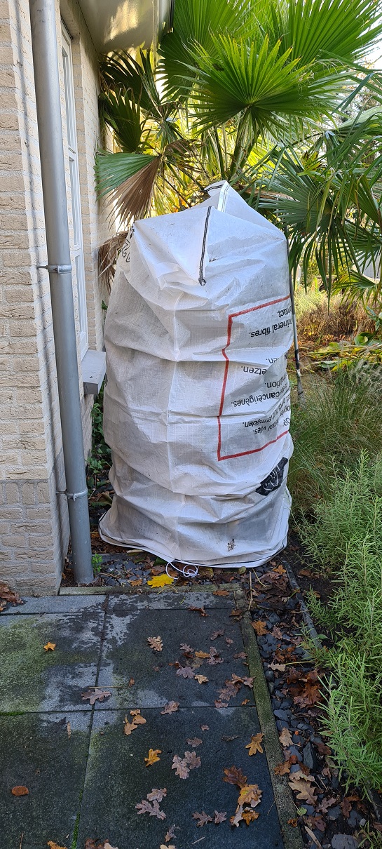 Gelukkig Rob! Ik zie dat de nachten volgende week rond het vriespunt zullen liggen, en twijfel daarom of ik 'm al ga inpakken of dat ik nog even wacht tot er echte vorst komt. Te vroeg inpakken maakt niet uit begrijp ik uit jouw verhaal?