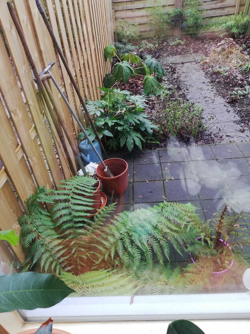 Mijn (nu nog kleine) Cyathea's had ik al in de schuur gezet.
