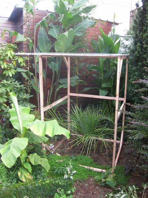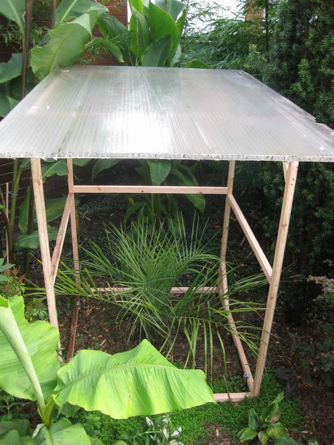 @ dimi : De schrik zit er inderdaad een beetje in heb zo afgelopen winter al een en halve trachy verloren en die zijn wel goed winterhard , het afdakje is nu meer bedoeld tegen het nat en zeker niet tegen de koude .ik steek de folie er expres niet onder omdat het de bedoeling is dat ik de zijpanelen in een stuk met folie aan zo ga stokeren in de zomer zodat ik niet telkens alles weer uitelkaar hoef te doen . ja ben ook een beetje bang voor de wind de latjes zijn 4 op 3 cm , maar ja we zien wel en het hout had ik gratis dus is niet zo erg als het rot denk nu wel dat het toch niet op één winter zal wegrotten he .