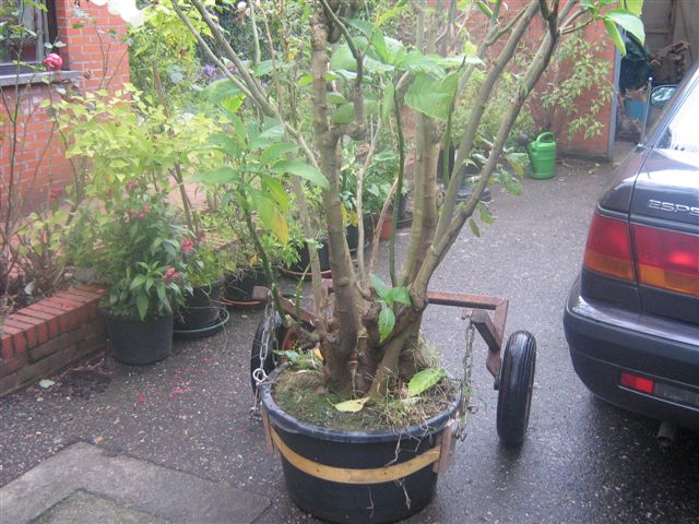 Moesten ze echt te zwaar worden kan je er nog steeds eerst een plank van pakweg 1m onder de pot leggen en daar dan 2 buisjes onder , zo kan je ze ook verrollen je moet dan wel telkens de buisje er terug een buisje er onder steken . begrijp je een beetje :?
